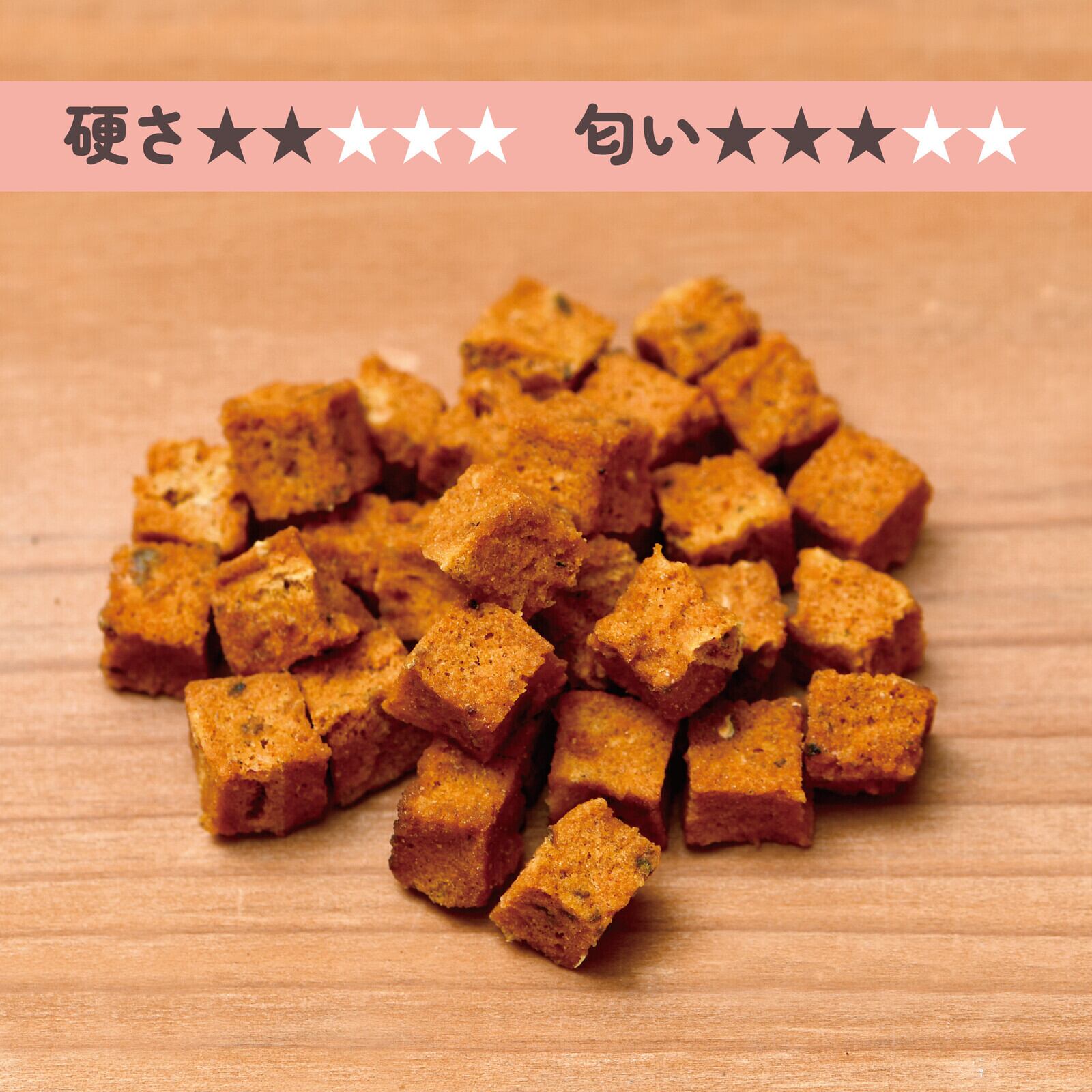 独自製法により特有の臭いを抑え、ペットにも人間にもたまらない風味豊かなキューブに仕上げました。